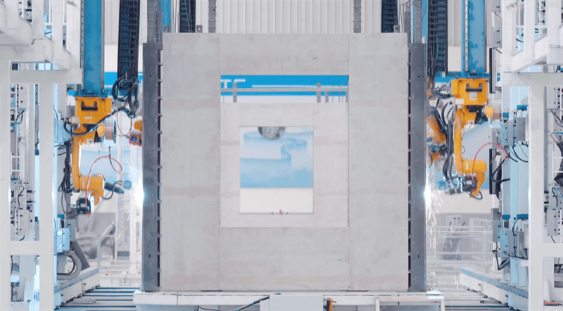 苏世龙介绍:“可以看到,在我们这条百米长的产线上,建筑的原材料通过焊接、铺板、打钉等12道自动化工序,12分钟就可以完成一块墙板的生产。然后在总装工作站上,墙板、顶板、地板,通过自动化焊接,2个小时以内,就可以完成一间模块化房屋的生产工作。”