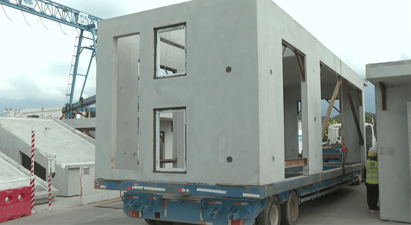 张海涛:是的,工厂距离项目仅有1公里路程。这些模块和构件生产完成后,经过质量检测,装车运往工地,到了现场只需要简单装配就可以了,就像“搭积木”一样造房子。