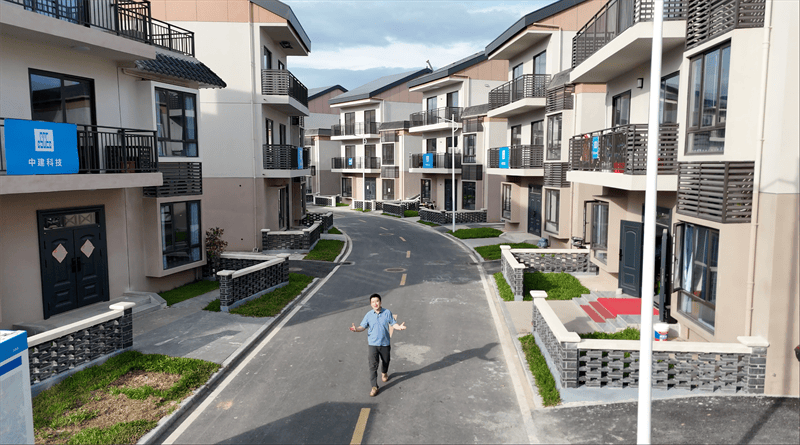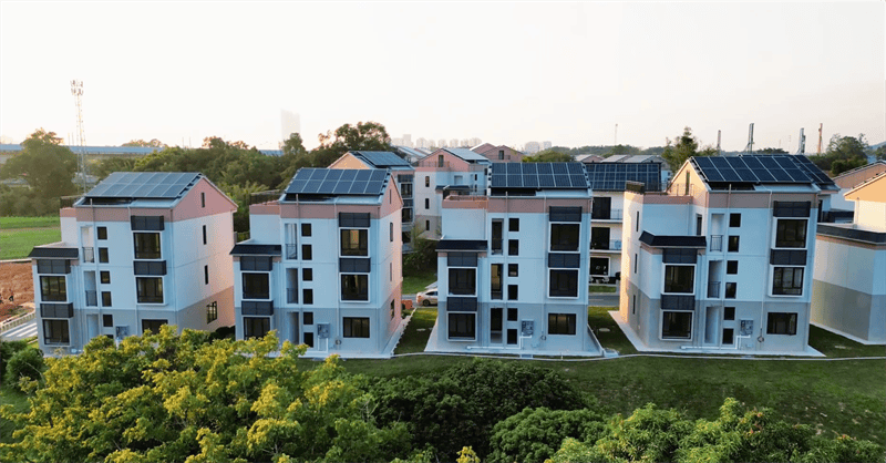 据介绍,该项目采用装配式建造方式建设的农宅,还增设光伏发电、“光储直柔”等绿色可再生能源系统,较普通砖混农宅可节约能耗30%以上。从自己“一砖一瓦”请工人建房,到交给企业开发、拎包入住,保证质量的同时,交付时间、整体成本,均大幅缩减。中建科技迳下未来乡村建筑工业化示范项目执行经理张海涛表示,现场装配所使用的模块、构件,从移动工厂生产,到运到现场吊装、拼装,可以实现14天建成一栋农宅,30天达到交付标准。
