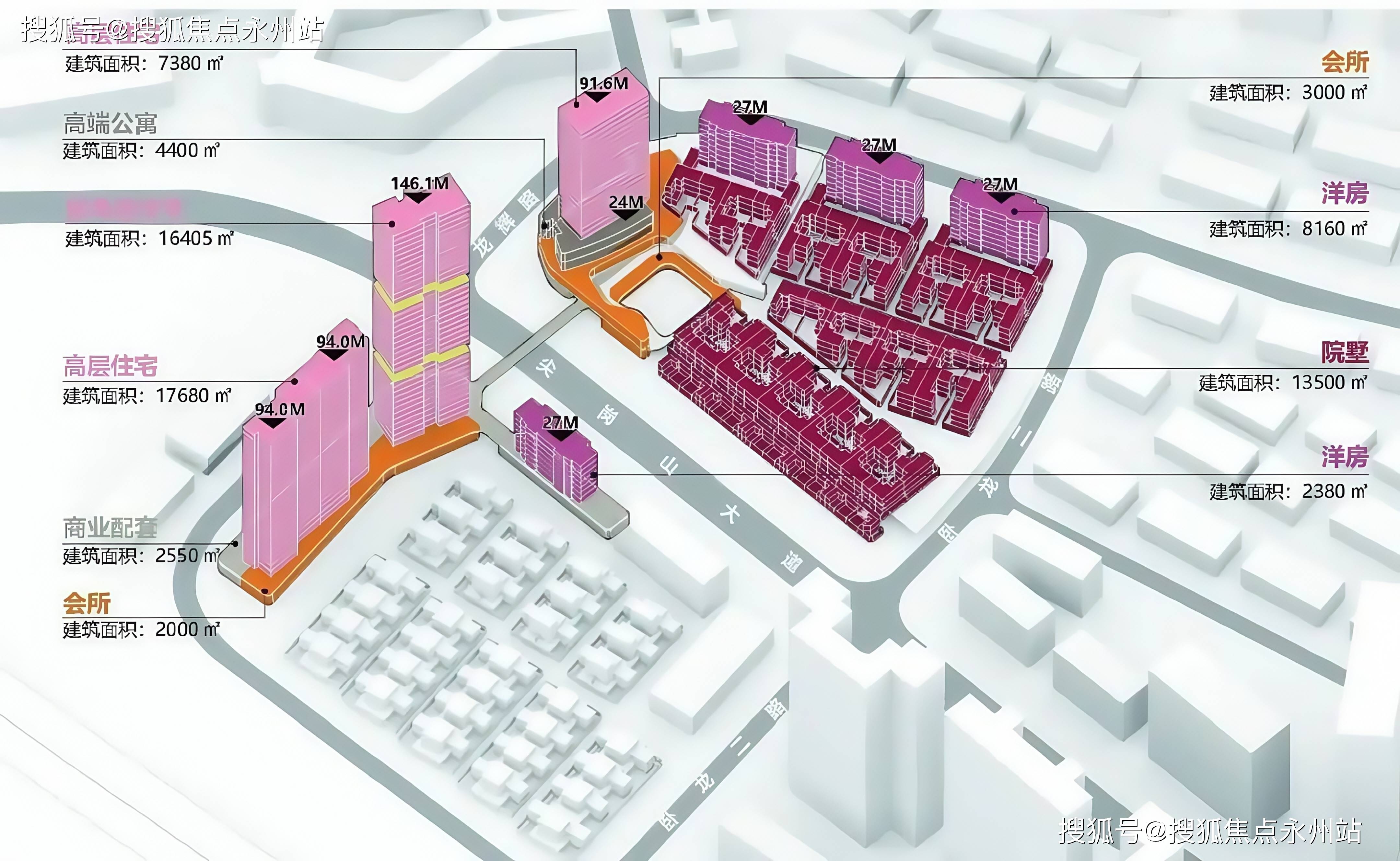 B区(北区):计容积率建筑面积约3.9万平方米,规划为2栋建筑高度约110.85米、共34层的高层住宅。