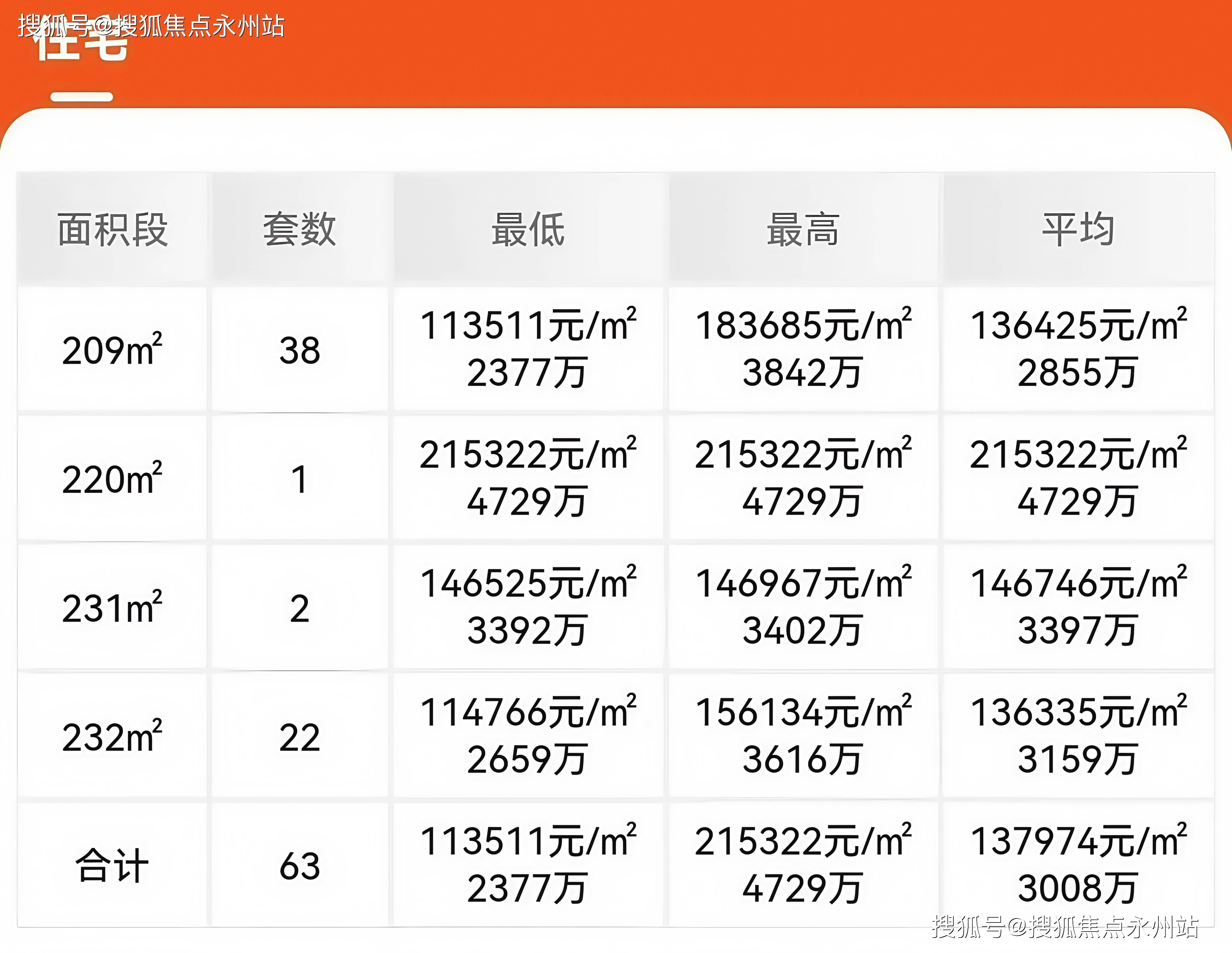 2024年10月16日,项目正式取得预售证,推出63套别墅,户型建筑面积约209-232平方米,备案均价13.8万元/平方米,套均总价约3008万元/套其中。,最贵的一套房源单价高达21.53万元,总价4729万元。