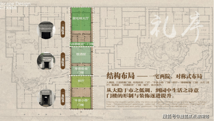 忆丰园的设计灵感源自宋代建筑的淡雅与精妙.设计师从宋式檐下细节、木构形式、淡雅配色中提取元素,以“一园三进”的礼序布局,再现传统院落的仪式感.