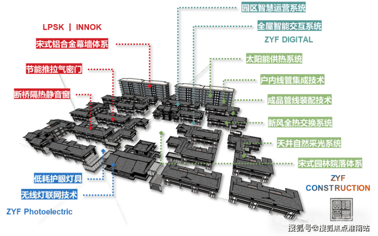屋身系统使用干挂石材或板材,保持建筑立面平整美观,提升抗污性和使用寿命.传统木结构被铝合金替代,保留传统风格的同时提升品质感.