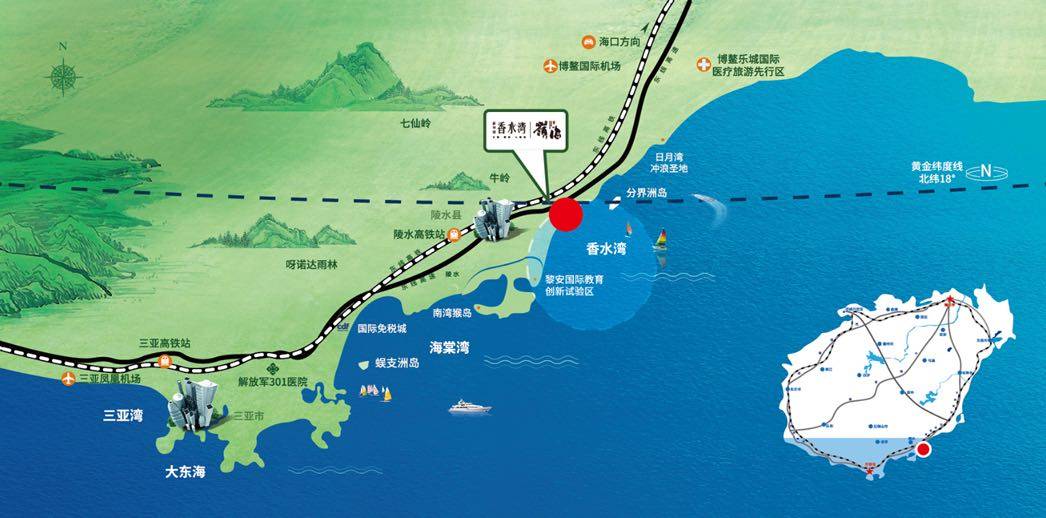 新华联香水湾位于陵水香水湾旅游度假A区,依托城市多维交通要道,须臾之间辗转全岛,约15分钟抵达高铁站畅达三亚、海口;紧邻高速入口,约50分钟车程直通三亚,咫尺之间享大三亚生活娱乐圈,加速高质美好生活!