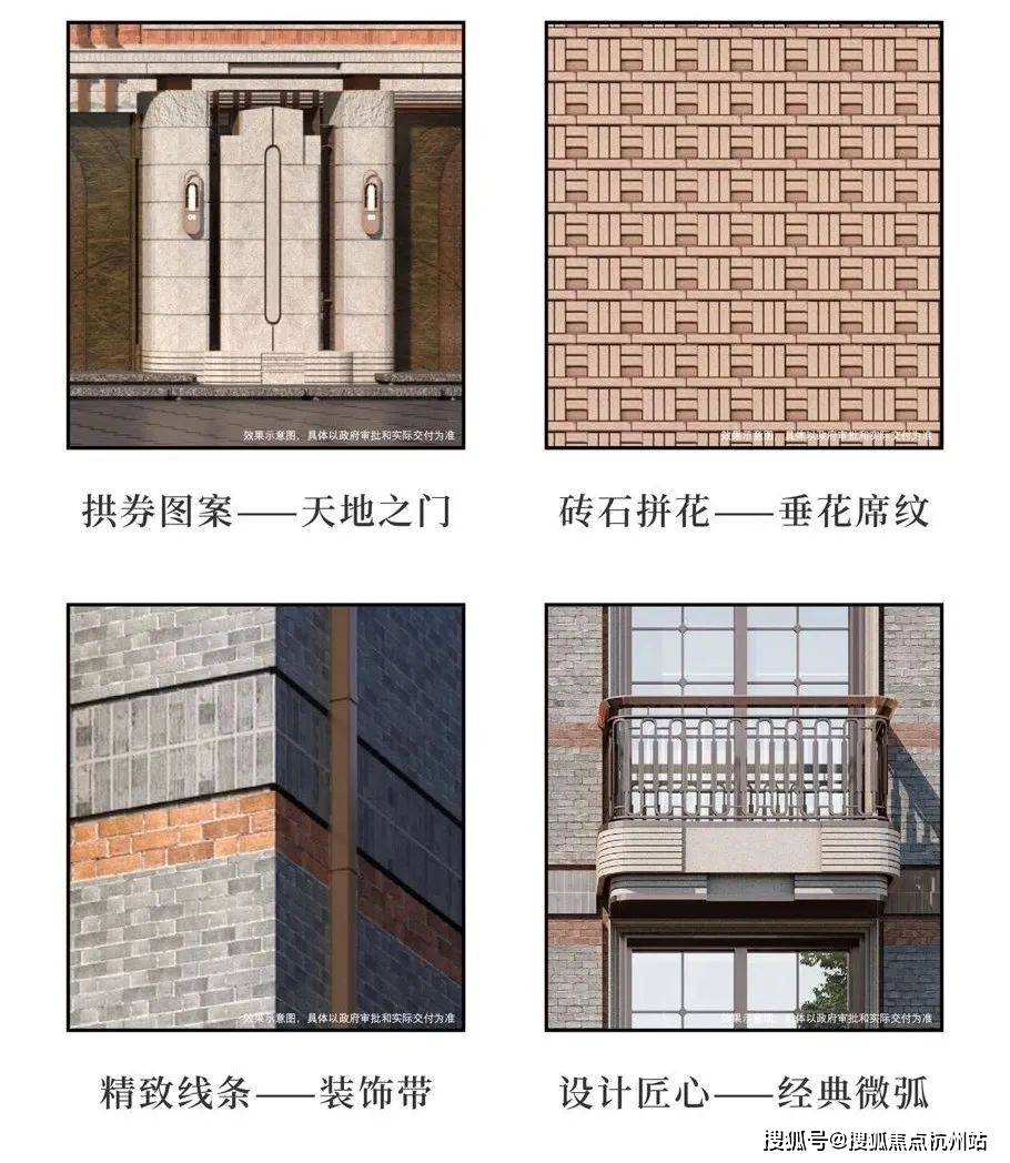 在建筑风格上,项目运用了4大新精致图案,从拱券图案、砖石拼花再到引入了文艺复兴建筑经典手法——刻槽技术,打造建筑装饰带,运用石库门椭圆造型元素,打造前沿建筑符号!
