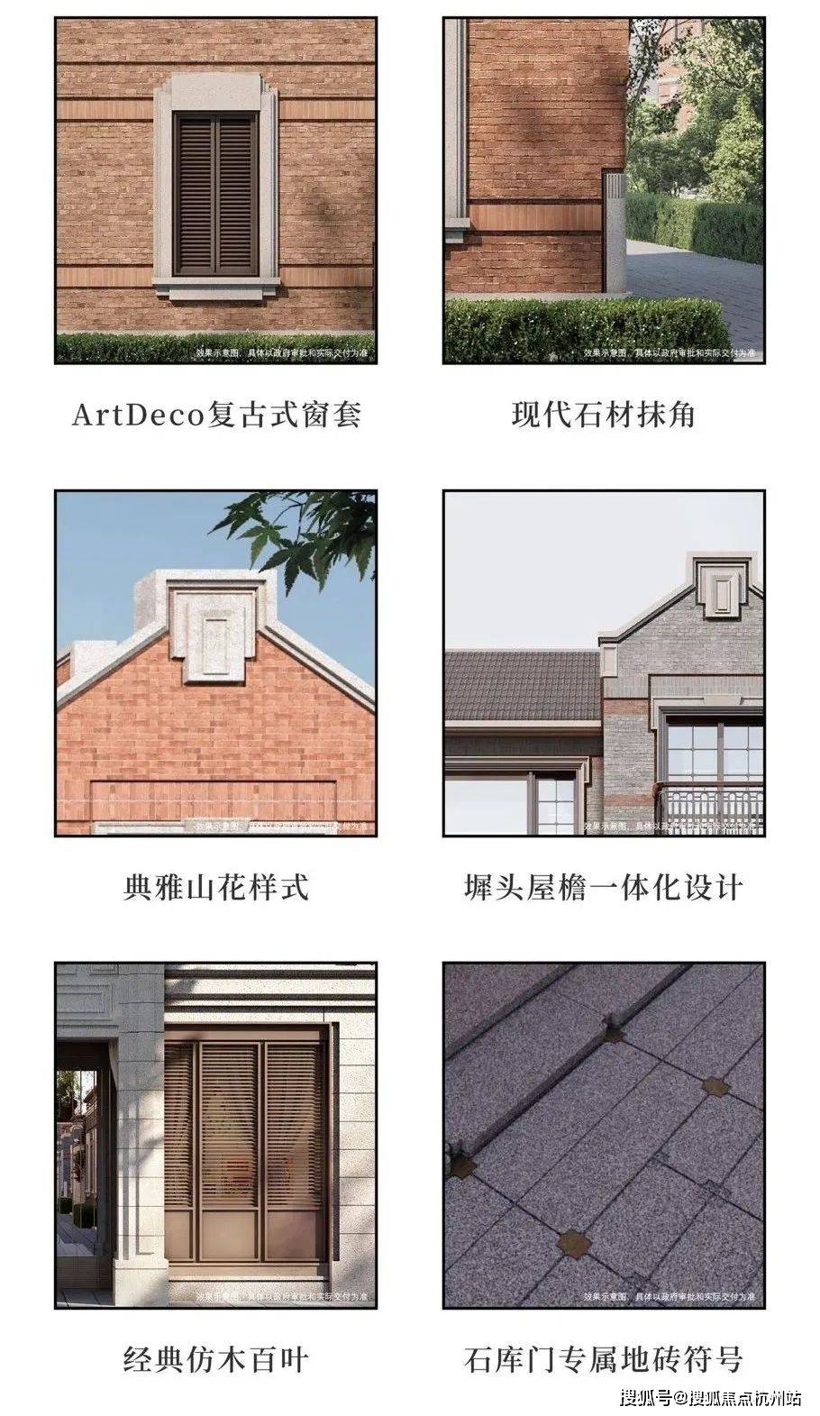 深入看细节,你会发现项目高颜值的6大新复古元素。包括Artdeco复古式窗套、现代石材抹角、典雅山花样式、墀头屋檐一体化设计、经典仿木百叶、石库门专属地砖符号等,用先锋表达回应在地文化。