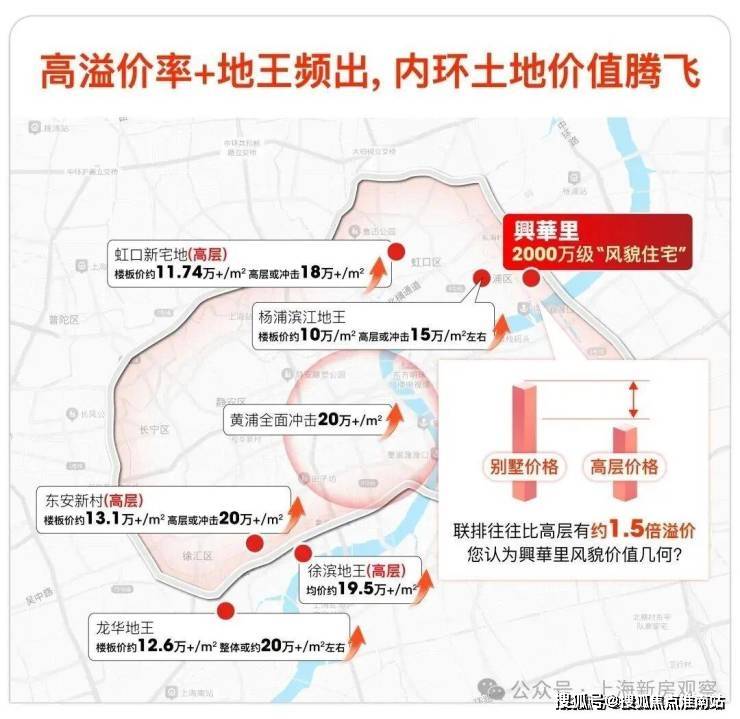 近期土地市场大热,且高溢价丝毫没有停下的态势。前有绿城徐滨地王开出19.5万/㎡,后有龙华地王,整盘预期或近20万/㎡,紧接着虹口内环又诞生地王,有望冲击18万+/㎡,最近五批次土拍,杨浦内环也诞生地王,高层有望冲击15万/㎡。